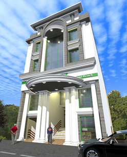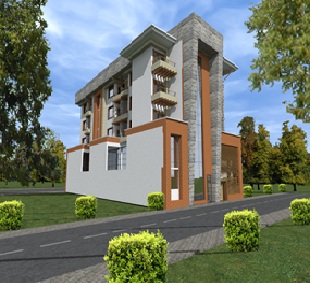 NAIVASHA 3 STAR HOTEL The six storey building adopts a rectangular form exhibiting symmetrical rhythm on the main facades, characterized by an interplay of recesses and bold elements towering at full height. The typical hotel upper floors sit on a curvilinear staggered twin podium that accommodates the main restaurant and bar as well as the conference facilities. The design adopts a simple roof with side fins that receives an extended canopy above, all well articulated to add motion and balance to the structure, thus crowning the beautifully and creatively designed hotel. |